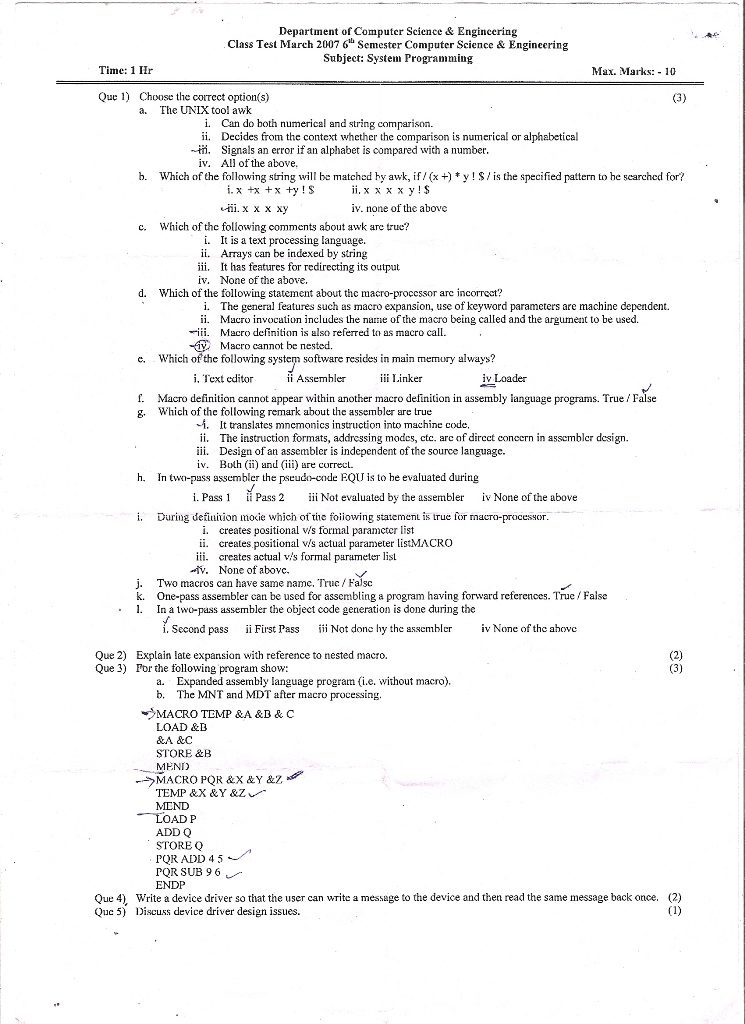 Class Test march 2007
