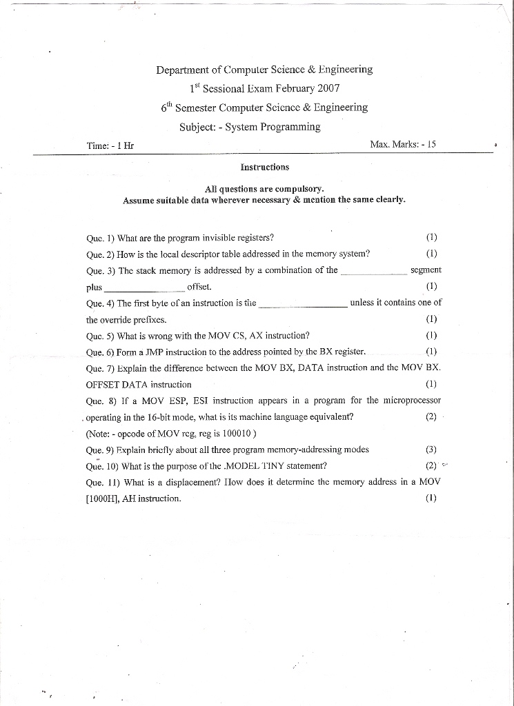 1st Sessional exm 2007