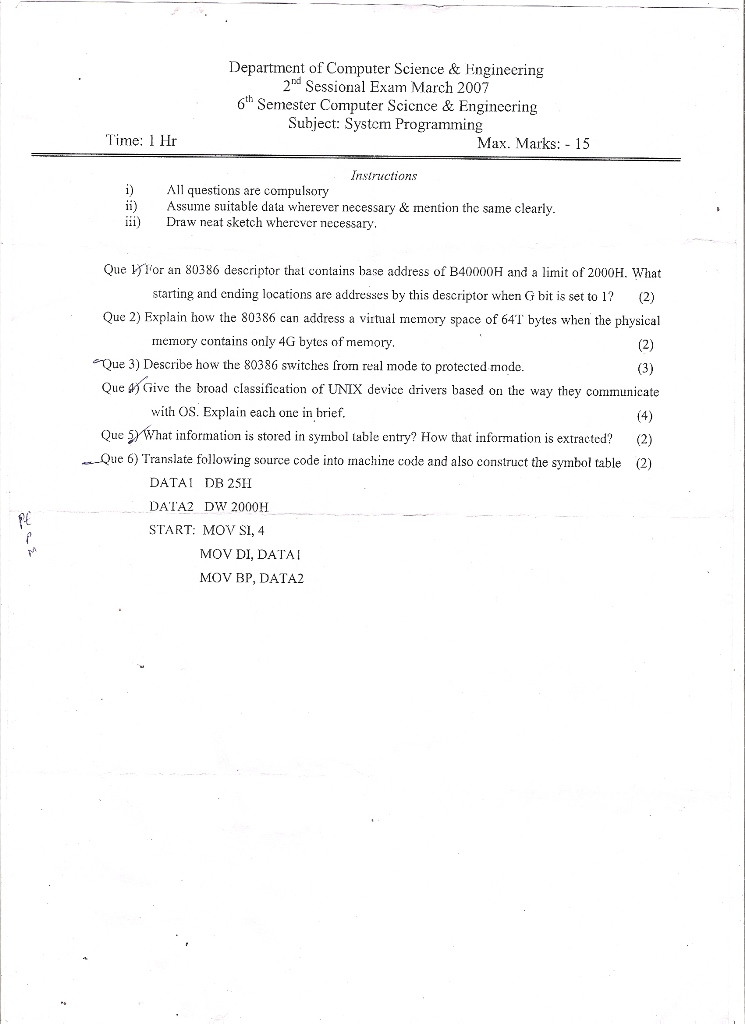 2nd Sessional EXM March 2007